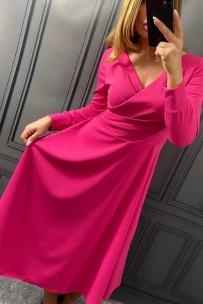 Šaty so zavinovacím výstrihom a rozšírenou sukňou fuksiové