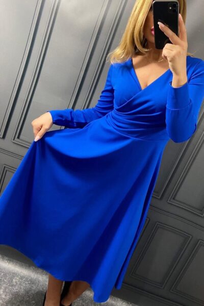 Šaty so zavinovacím výstrihom a rozšírenou sukňou kráľovsky modré