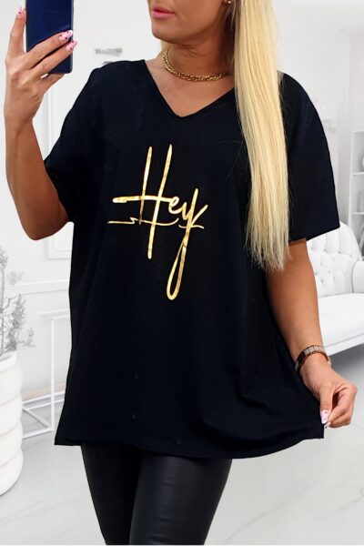Tričko so zlatým nápisom Hey čierne