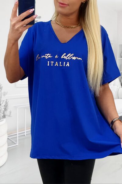 Tričko so zlatým nápisom Italia kráľovsky modré