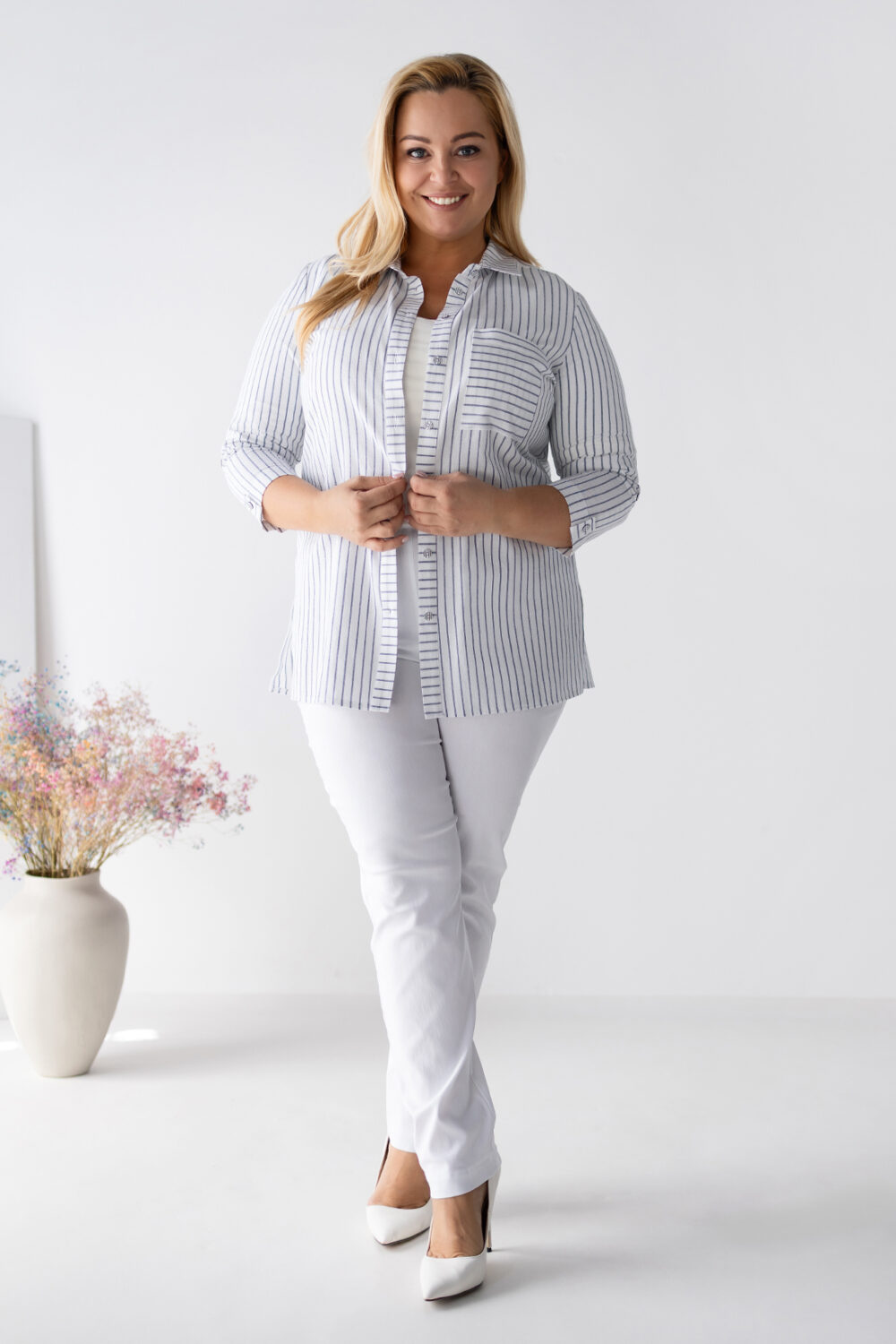 Tieto nohavice sú dokonalým základom šatníka každej ženy, ktorá chce pôsobiť sviežo, čisto a štýlovo. Či už ich zladíte s prúžkovanou košeľou, elegantným topom alebo športovým tričkom, výsledný outfit bude vždy pôsobiť moderne a upravene. Ich strih bol navrhnutý s ohľadom na plnšie tvary, pričom kombinujú ležérne pohodlie s elegantným vzhľadom – presne tak, ako si to žiada plus size móda dnešnej doby.