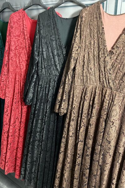 Čipka po celej ploche šiat – dodáva luxusný vzhľad, je jemná a príjemná na nosenie.