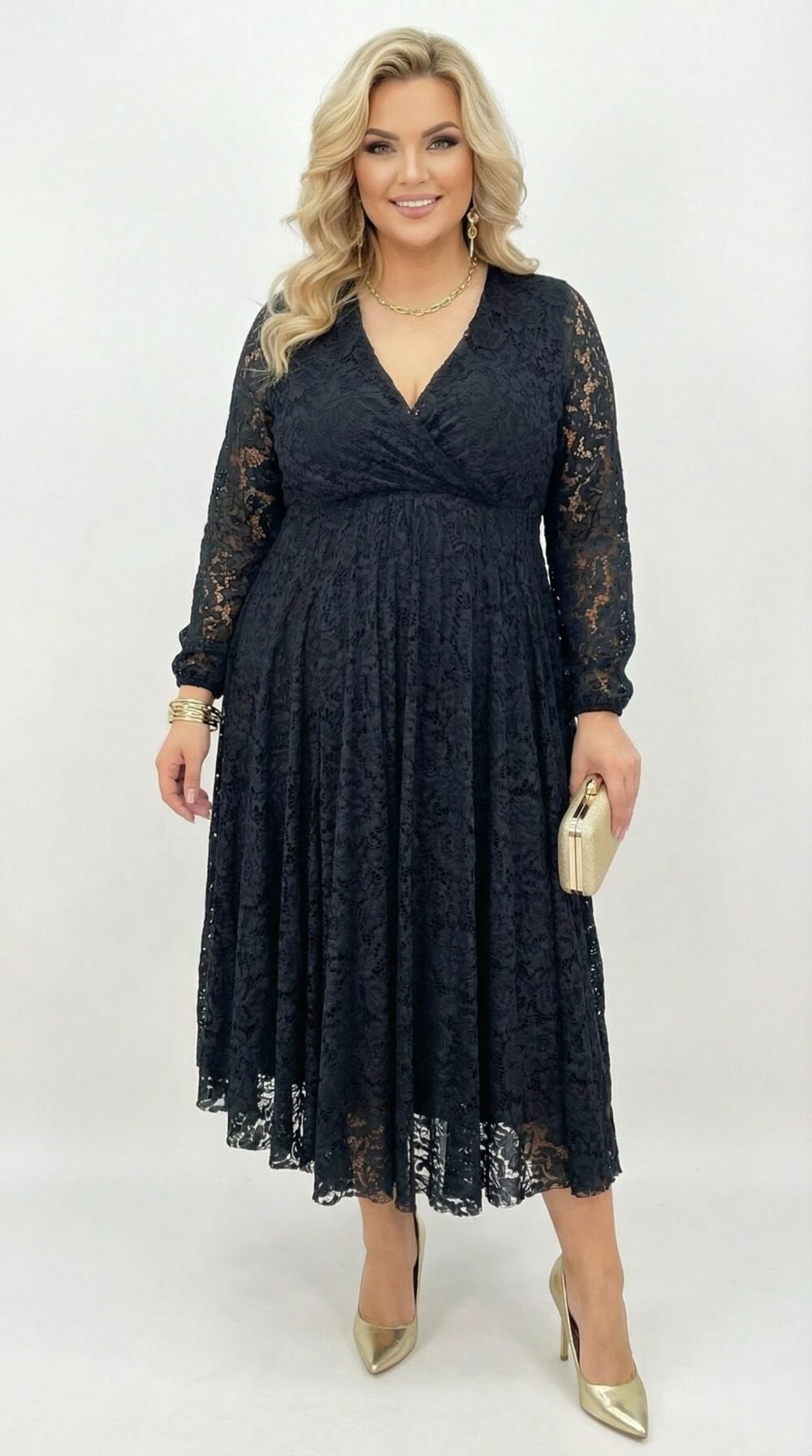 Čierna je stávka na istotu – a v podobe dlhých čipkovaných šiat je jednoducho neodolateľná. Jemná čipka, ženský zavinovací výstrih a dĺžka, ktorá pôsobí slávnostne, robia z týchto šiat kúsok, ktorý využijete vždy, keď má byť večer výnimočný. Sú presne tie šaty, v ktorých sa cítite sebavedomo, elegantne a sama sebou. Hodia sa na večierky, oslavy, malé plesy aj formálnejšie rodinné stretnutia.