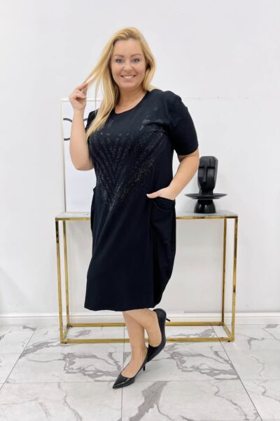 Pohodlie, ktoré neuberá na štýle – tieto čierne šaty v ležérnom elastickom prevedení si zamilujete na každodenné nosenie do mesta, na kávu s kamarátkou alebo aj do práce. Vďaka šikovnému strihu sa krásne prispôsobia postave a dodajú sebavedomý pocit pohodlia počas celého dňa.