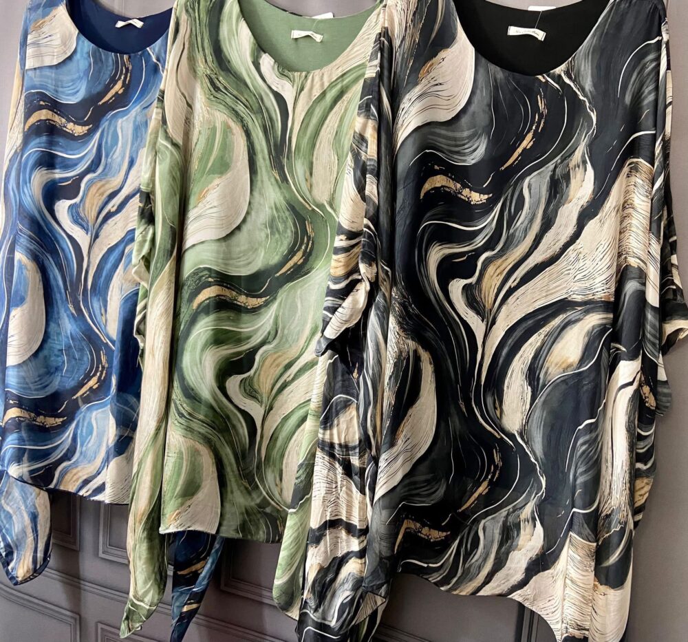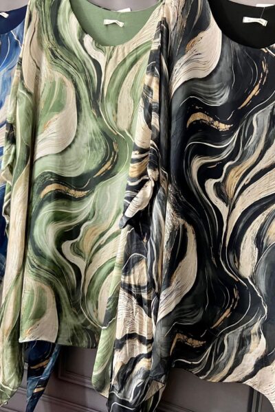 Voľný kaftanový strih – dokonale zakrýva ramená, bruško aj boky, bez obmedzenia pohybu