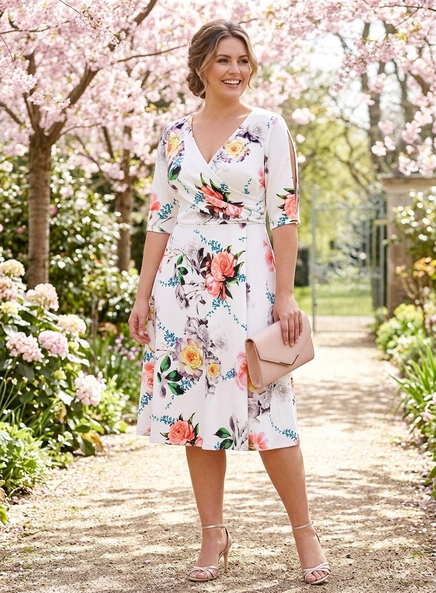 V týchto kokteilových kvetovaných šatách zažiari každá krivka. Biely podklad pôsobí čisto a sviežo, zatiaľ čo farebné kvety v odtieňoch ružovej, fuksiovej, broskyňovej a zelenej vytvárajú neprehliadnuteľný romantický dojem. Strih šiat zvýrazní ženskosť, no zároveň zostáva pohodlný a praktický. Zažiarite v nich všade, kam sa vyberiete, či už na svadbe, svätom prijímaní, záhradnej párty alebo na inej spoločenskej udalosti.