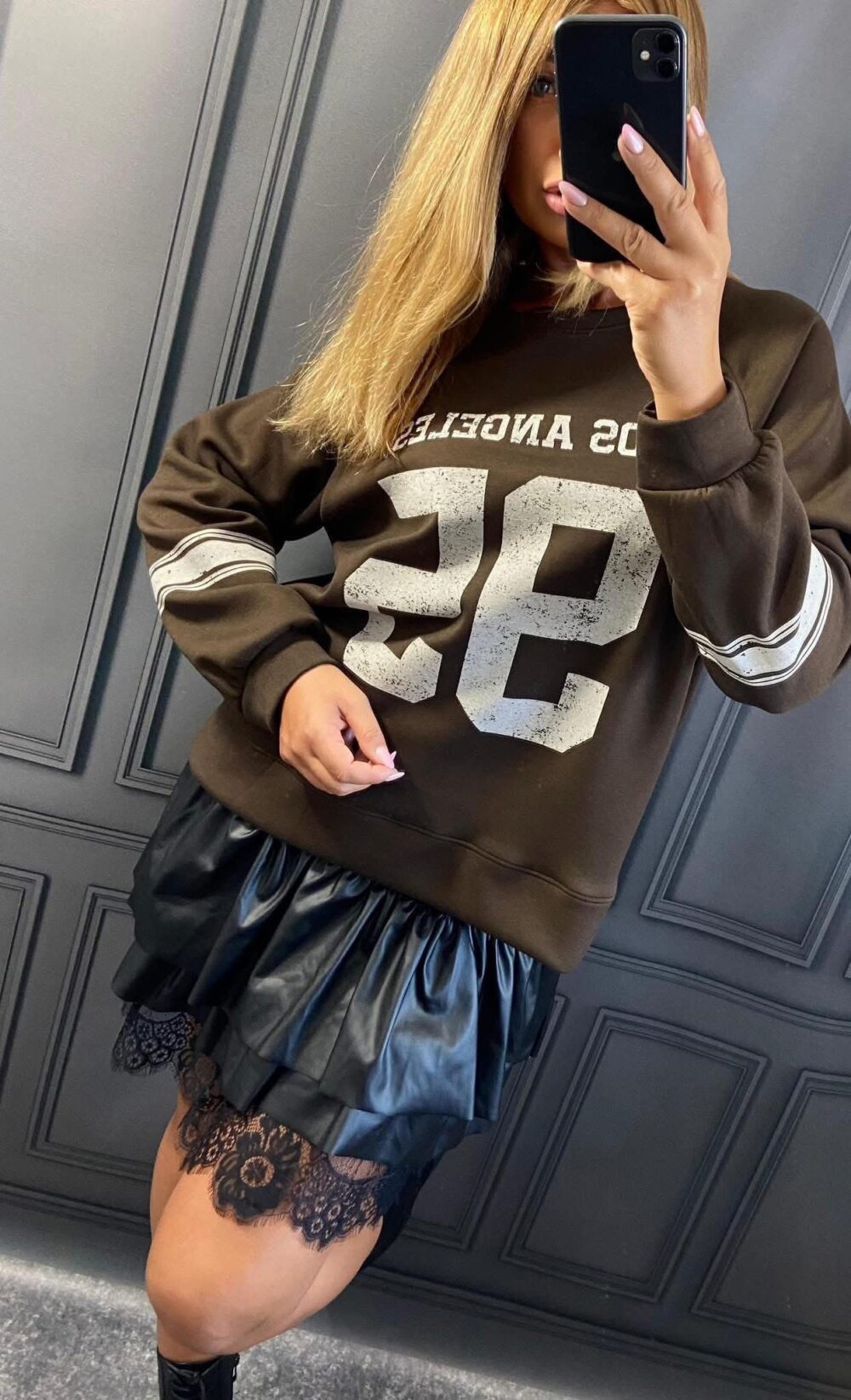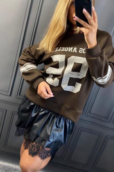 Mikina s číslom a nápisom Los Angeles čokoládovo hnedá