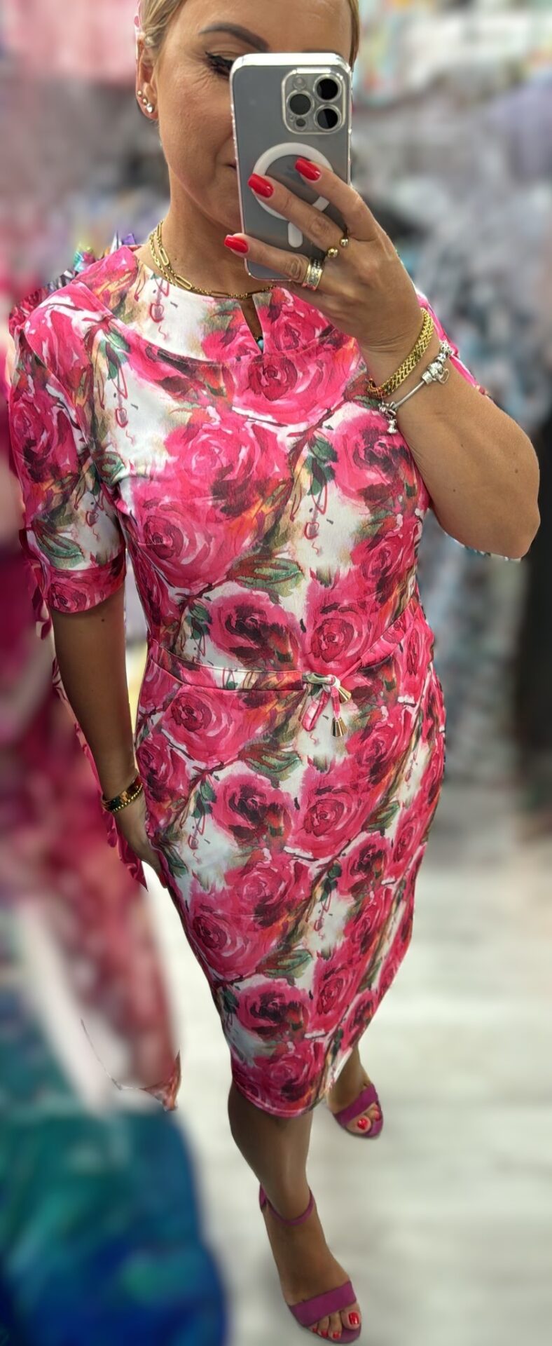 (veľ. 40) Pružné šaty s ružami ružovo-biele