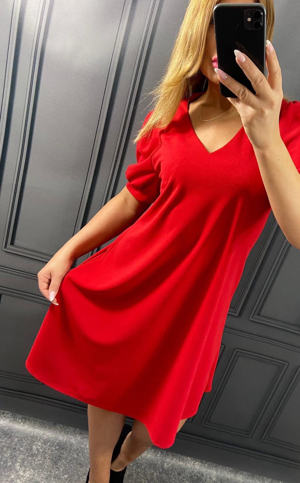 Sú dni, keď stačí jeden kúsok a celý outfit je vyriešený. Tieto červené šaty s krátkymi balónovými rukávmi sú presne takým kúskom – ženské, výrazné a pritom veľmi pohodlné. Jednoduchý strih nechá vyniknúť farbu a vytvára siluetu, ktorá lichotí krivkám. Vďaka jemne rozšírenej sukni a romantickým rukávom pôsobia šaty elegantne, ale zároveň uvoľnene. Hodia sa na oslavu, večeru, rodinnú udalosť, ale pokojne aj do práce či na stretnutie v meste.