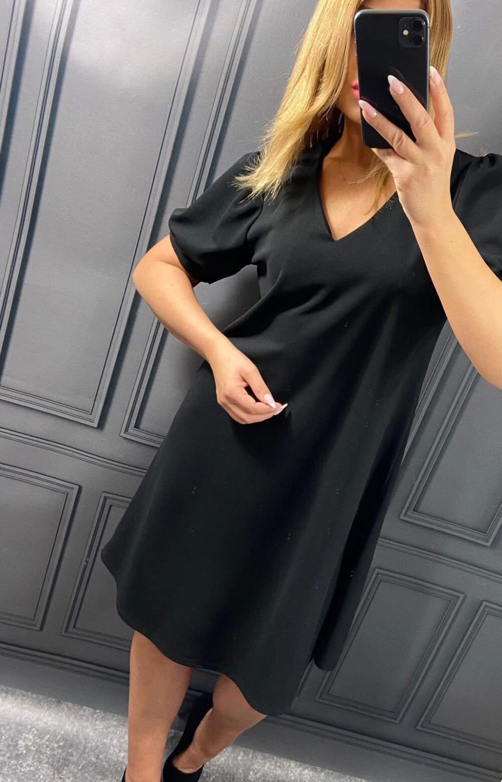 Tieto nadčasové čierne šaty s krátkymi balónovými rukávmi dokážu zachrániť množstvo situácií – keď sa chcete obliecť rýchlo, ale zároveň hľadáte eleganciu, štýl a pohodlie. Jednoduchý strih necháva vyniknúť krásnej siluete a jemne tvarované rukávy dodávajú modelu ženský charakter. Čierna farba pôsobí nadčasovo a elegantne, takže tieto šaty môžete nosiť do práce, na oslavu, do divadla, na večeru aj na rodinné stretnutie. Stačí zmeniť doplnky a z jedného modelu vznikne úplne iný outfit.