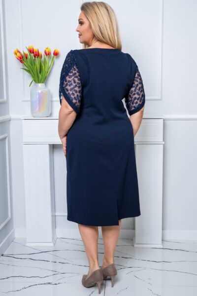 Šaty s preloženými čipkovanými rukávmi tmavomodré