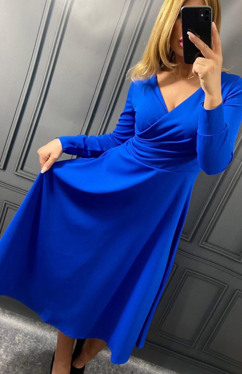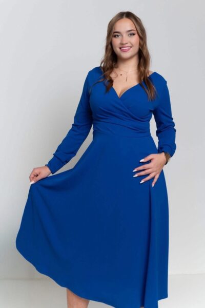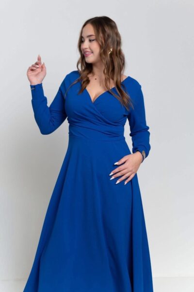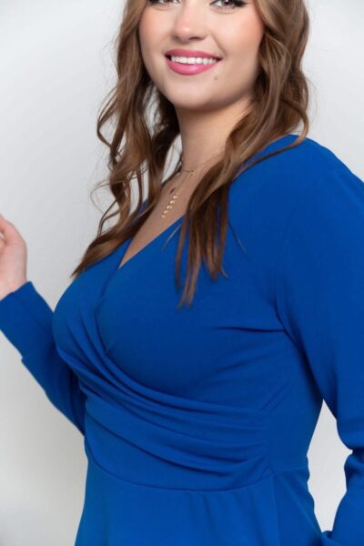 Strih, ktorý krásne zvýrazní dekolt, vytvaruje pás a vďaka jemnému riaseniu zjemní aj oblasť bruška. Také benefity vám ponúkajú naše kráľovsky modré šaty s prekladaným výstrihom. Sýty modrý odtieň patrí medzi farby, ktoré okamžite rozžiaria celý outfit a zároveň si zachovávajú elegantný charakter. Výsledkom je veľmi ženský, elegantný a zároveň pohodlný model, ktorý sa hodí na množstvo príležitostí. Napríklad na svadby, oslavy, plesy, večerné podujatia alebo elegantné rodinné stretnutia.