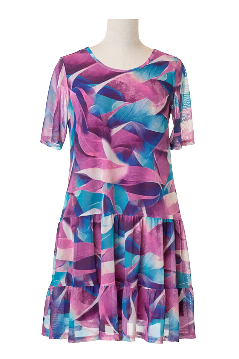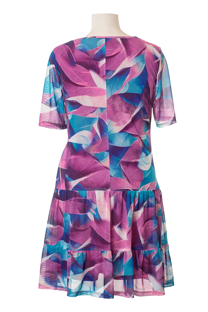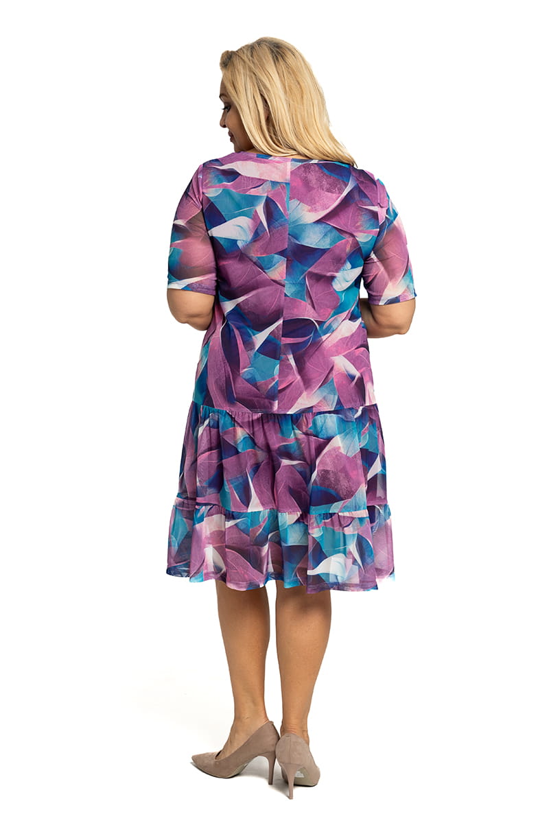 Sieťovinové šaty so stupňovitou sukňou fialové