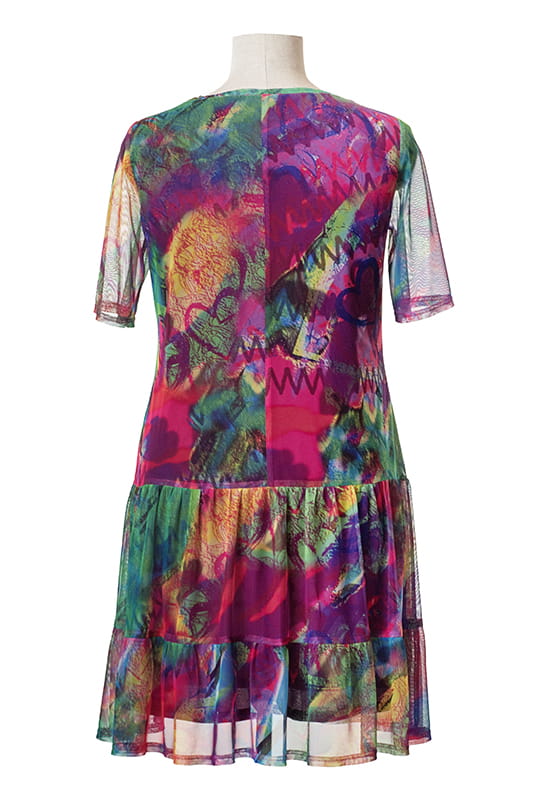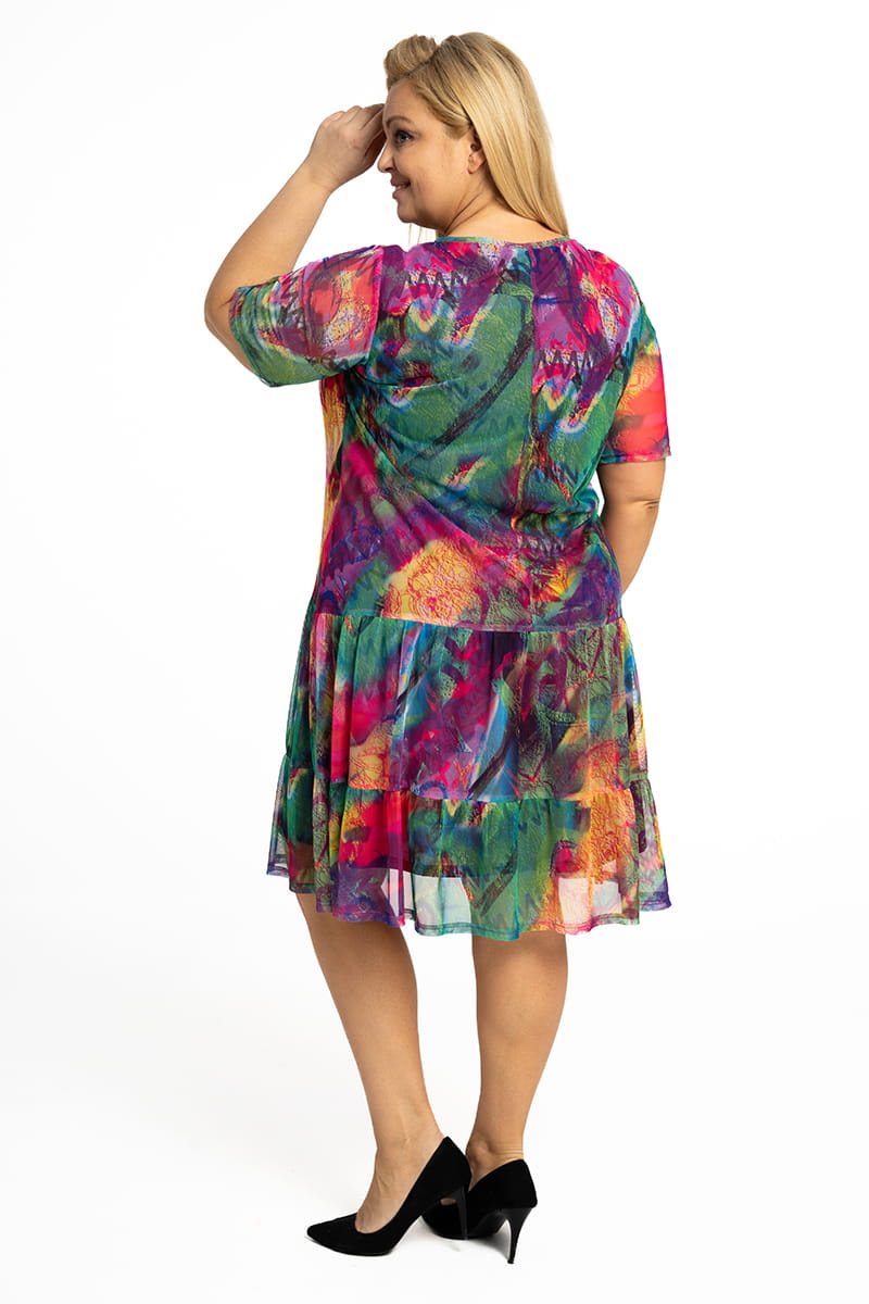 Sieťovinové šaty so stupňovitou sukňou pestrofarebné