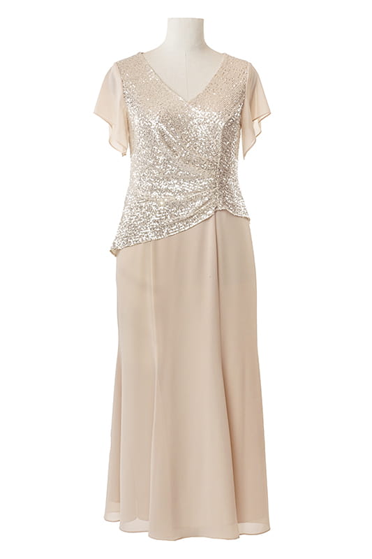 Tieto šifónové šaty s flitrovaným vrchom sú výnimočné! Jemná krémová farba pôsobí veľmi slávnostne a zároveň elegantne –  krásne rozžiari pleť a hodí sa na výnimočné príležitosti. Vrchná časť šiat sa pri pohybe jemne trbliece a vytvára luxusný efekt, zatiaľ čo spodná časť zostáva ľahká, splývavá a vzdušná. Strih je navrhnutý tak, aby opticky zoštíhľoval siluetu a jemne modeloval postavu, čo ženy s krivkami často oceňujú. Tento model sa prirodzene hodí na svadby, plesy, večerné oslavy alebo slávnostné rodinné udalosti.