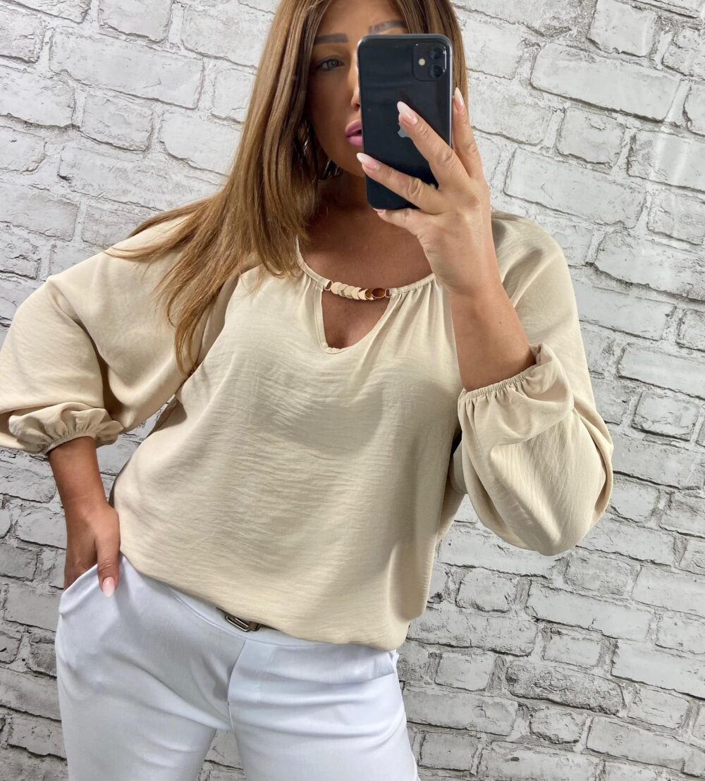 Táto elegantná tunika v jemnej béžovej farbe je ideálnym základom do šatníka každej ženy, ktorá si potrpí na vkusné a pohodlné kúsky. Vhodná na pracovné stretnutia, rodinné obedy aj bežné dni, kedy sa chcete cítiť upravene a žensky bez zbytočnej námahy.