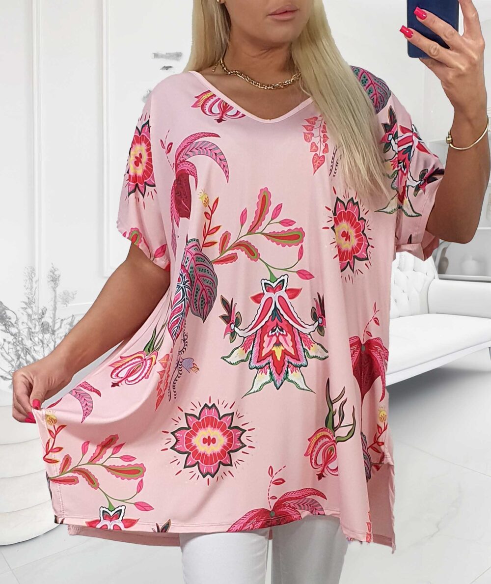 Tunikový top s motívom kvetov ružový