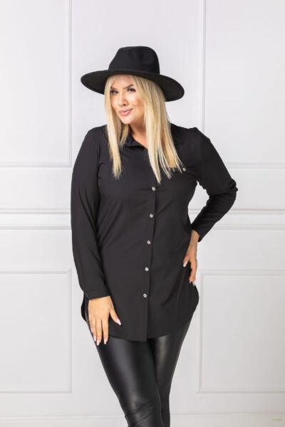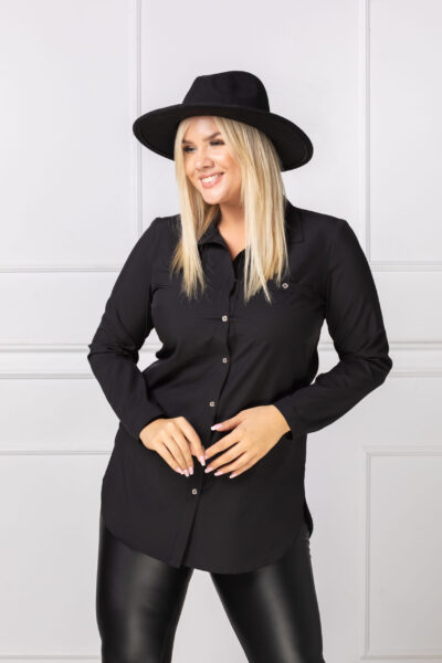(veľ. 48/50 a 56/58) Blúzka s imitáciou vrecka čierna