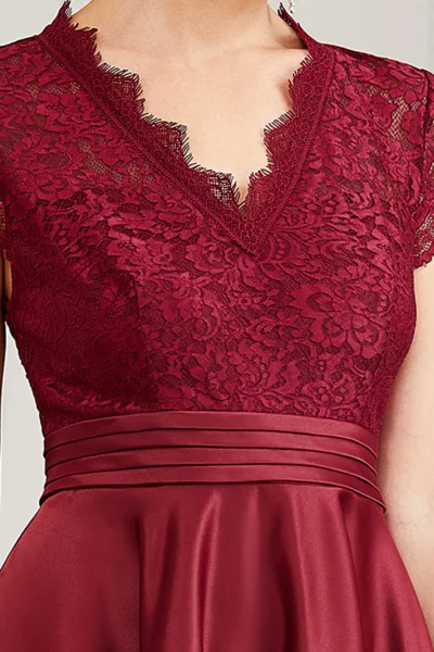 Kto povedal, že elegancia nemôže byť praktická? Tieto vínovočervené spoločenské šaty dokazujú, že krása a pohodlie môžu ísť ruka v ruke. Romantický čipkovaný živôtik, výstrih do V a rozšírená saténová sukňa vytvárajú dokonalú rovnováhu medzi ženskosťou a komfortom. A ten bonus, ktorý si zamilujete? Skryté vrecká, kam sa zmestí rúž, mobil či iné malé nevyhnutnosti.