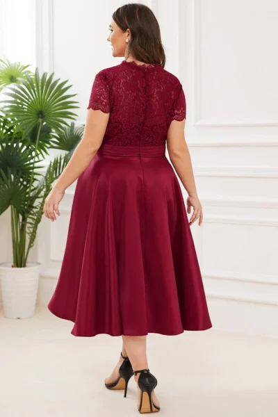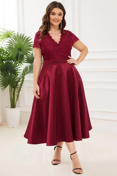 (veľ. 52) Kokteilové šaty so saténovou sukňou vínovočervené