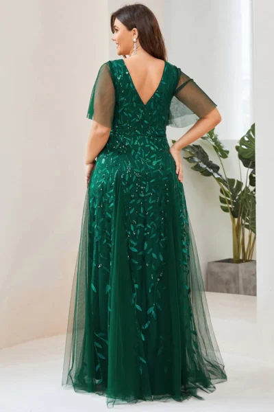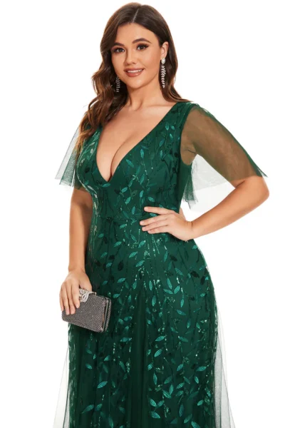 Prečo si tieto šaty zamilujete? Tieto šaty sú dokonalým spojením elegancie a pohodlia. Strih a materiály sú prispôsobené potrebám plus size žien, pričom zdôrazňujú to najlepšie na vašej postave. Smaragdová farba a trblietavé detaily zaručia, že budete centrom pozornosti na akejkoľvek spoločenskej udalosti.