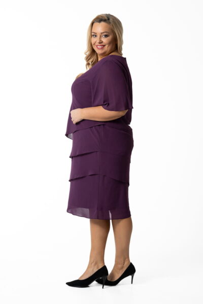 (veľ. 54) Šaty s asymetrickými volánmi slivkové