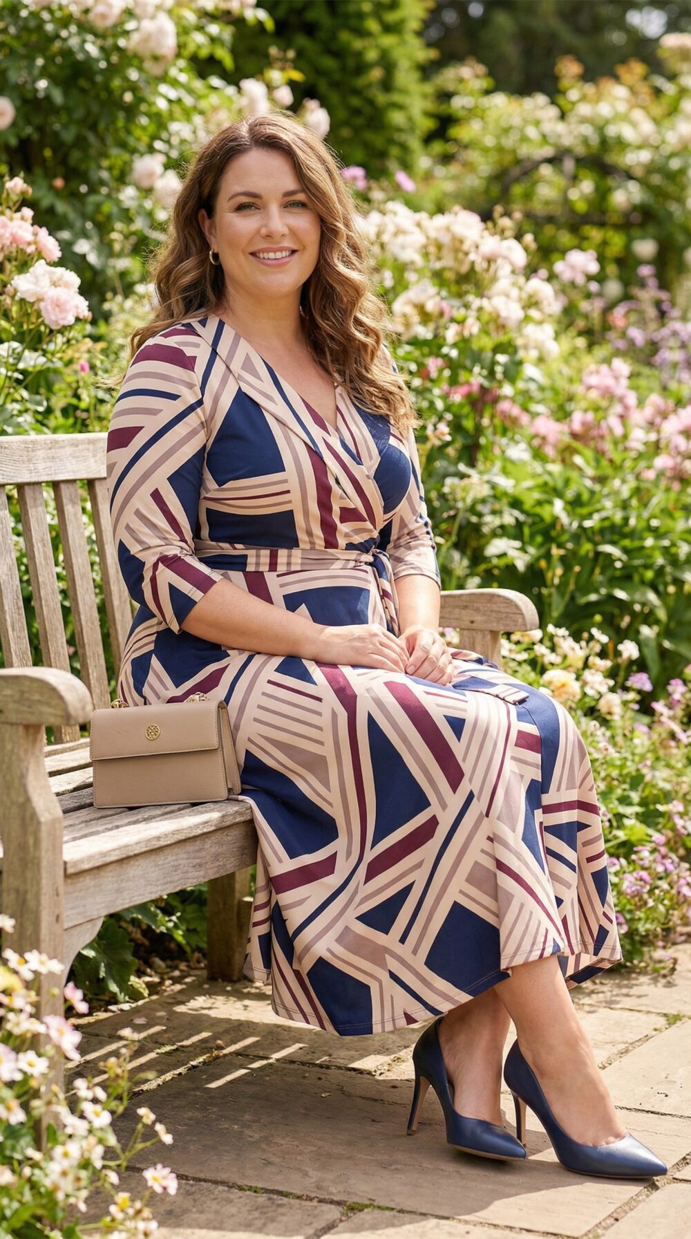 Šaty výborne fungujú s kontrastnými doplnkami, ktoré nechajú vyniknúť samotný vzor. Skvelo sa k nim hodia bordové alebo tmavomodré lodičky, prípadne elegantné topánky v odtieni slonovinovej kosti. Kabelku zvoľte menšiu – ideálne v tmavšom odtieni jednej z farieb vzoru. Na vrch môžete pridať krátke sako, ktoré podčiarkne čisté línie šiat. Šperky odporúčame jemné, ideálne v zlatej alebo striebornej farbe, aby ladili so sponou v páse.